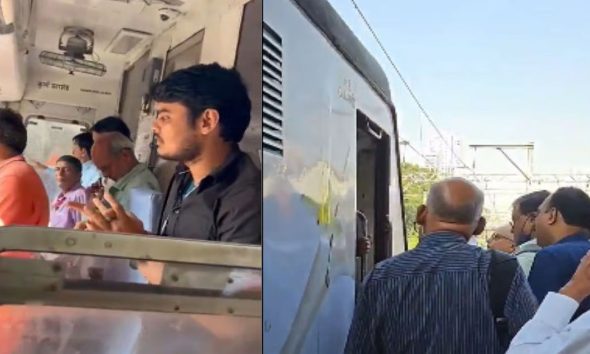- ممبئی لوکل ٹرین میں افراتفری : دادر اسٹیشن پر بدلاپور- سی ایس ایم ٹی اے سی لوکل ٹرین کے دروازے نہ کھلنے سے مسافر ناراض ...
