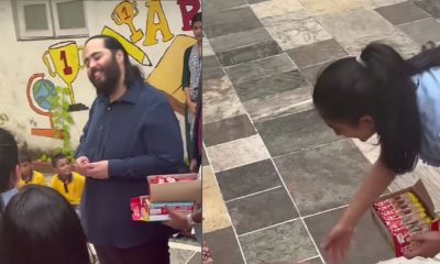 اننت اور رادھیکا امبانی نے دیوالی 2025 پر یتیم بچوں میں چاکلیٹ تقسیم کی۔