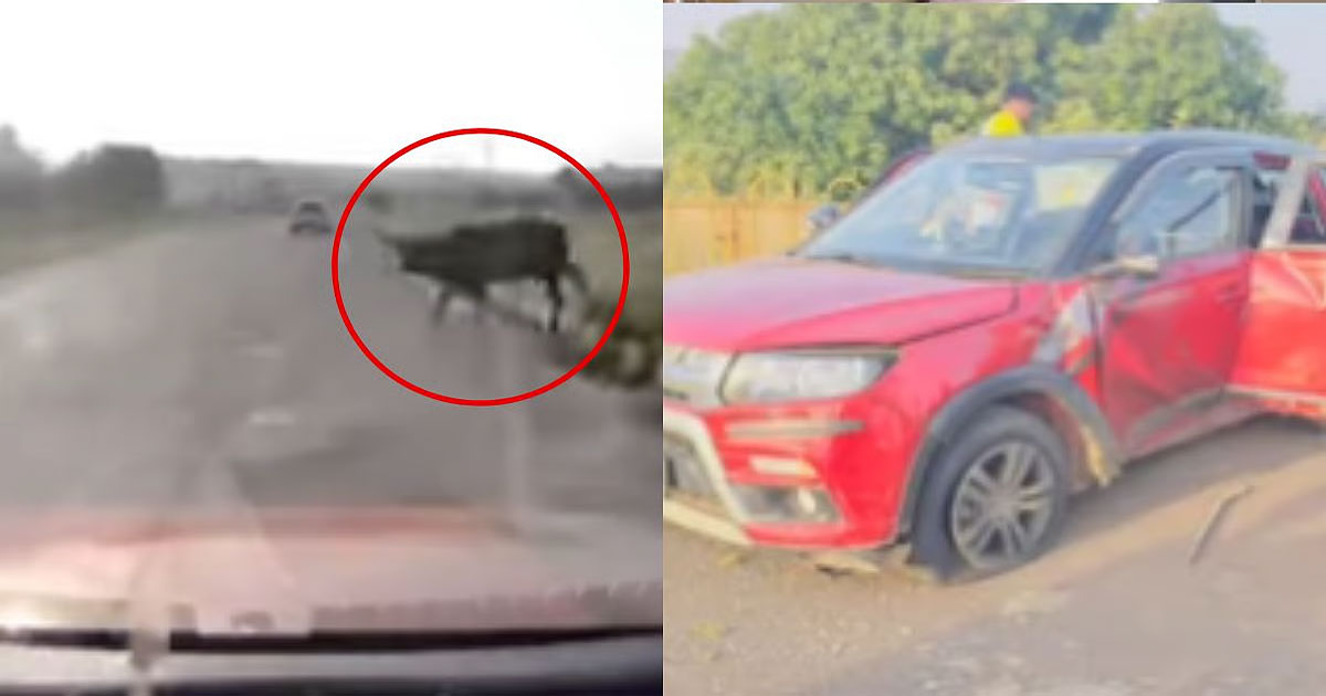 رتناگیری : رتناگیری ضلع کے راجا پور تعلقہ کے قریب ممبئی-گوا ہائی وے پر ایک بڑا حادثہ اس وقت پیش آیا جب ایک گائے اچانک سڑک کے پار بھاگ گئی، جس کی وجہ سے ایک تیز رفتار کار بے قابو ہو گئی۔ خوش قسمتی سے اس واقعے میں کوئی جانی نقصان نہیں ہوا تاہم گاڑی کو شدید نقصان پہنچا۔ وائرل ڈیش کیم ویڈیو کے مطابق، سرخ رنگ کی ماروتی سوزوکی وٹارا بریزا ہائی وے پر گاڑی چلا رہی تھی کہ اچانک ایک گائے نے سڑک عبور کی۔ ڈرائیور جانور سے ٹکرانے سے بچنے کی کوشش میں تیزی سے مڑ گیا، جس سے گاڑی پھسل گئی اور کنٹرول کھو بیٹھی۔ گاڑی رکنے سے پہلے سڑک کے دوسری طرف مڑ گئی۔